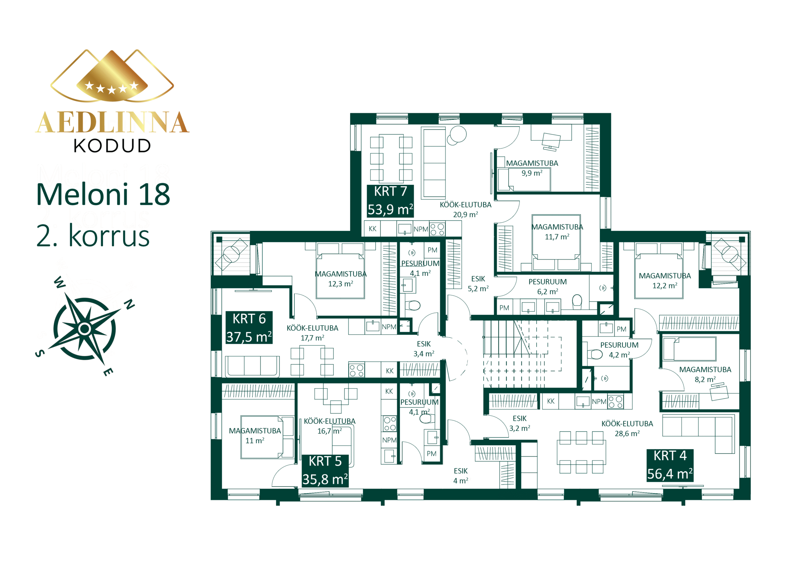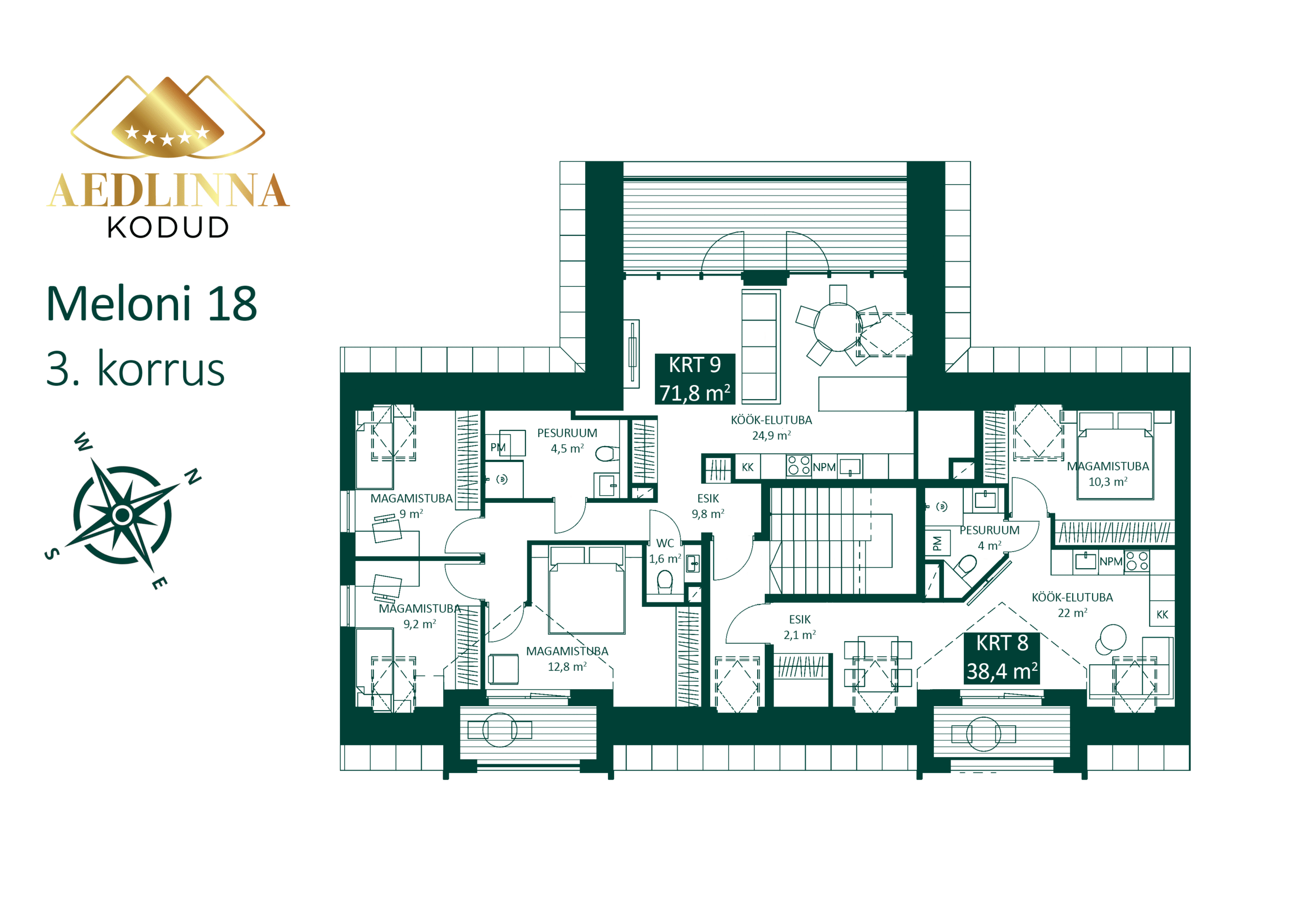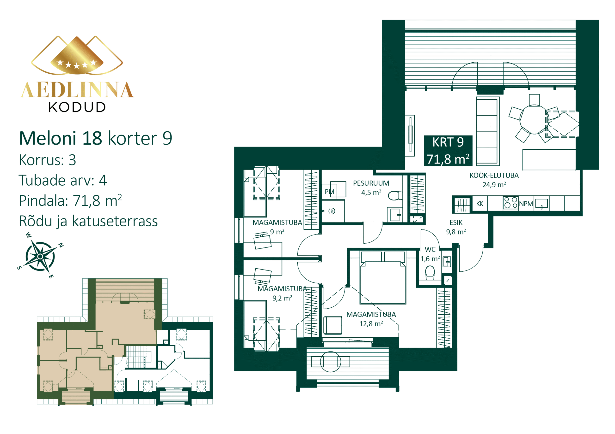 9 3 4 71.8 Katuseterrass ja rõdu Ei 1 Ei 319 900