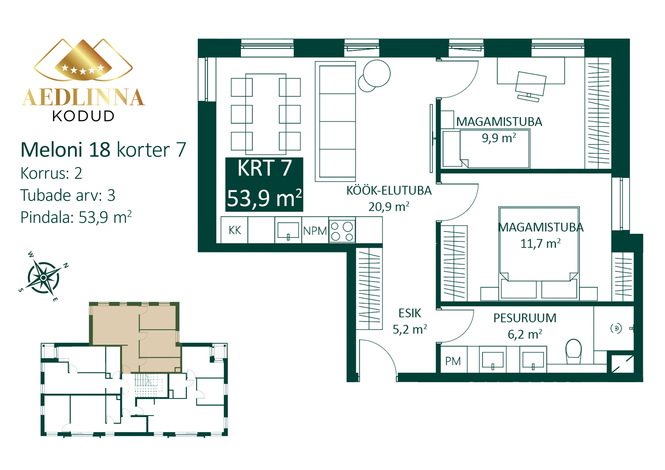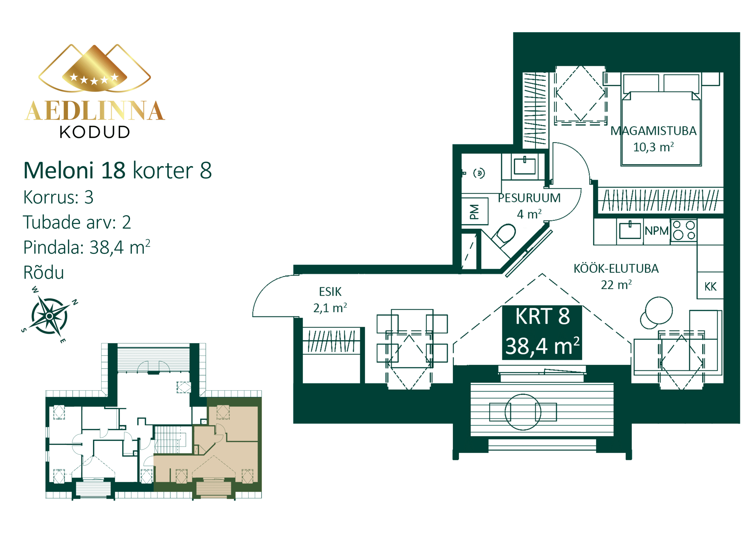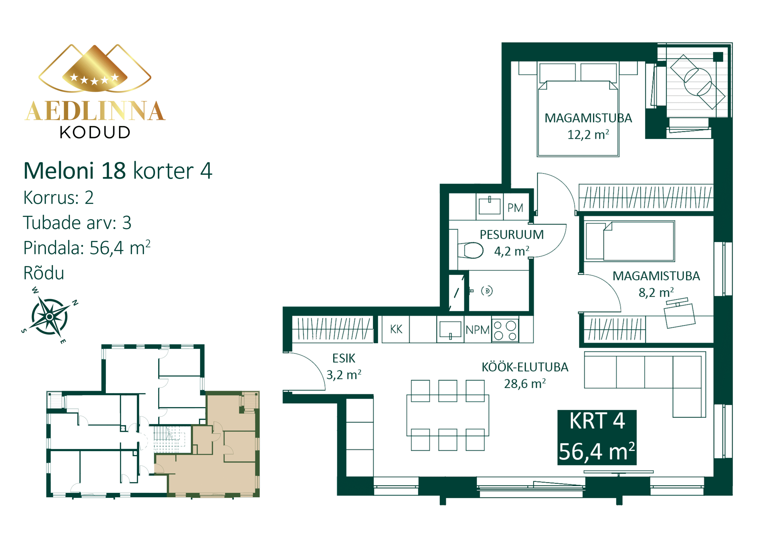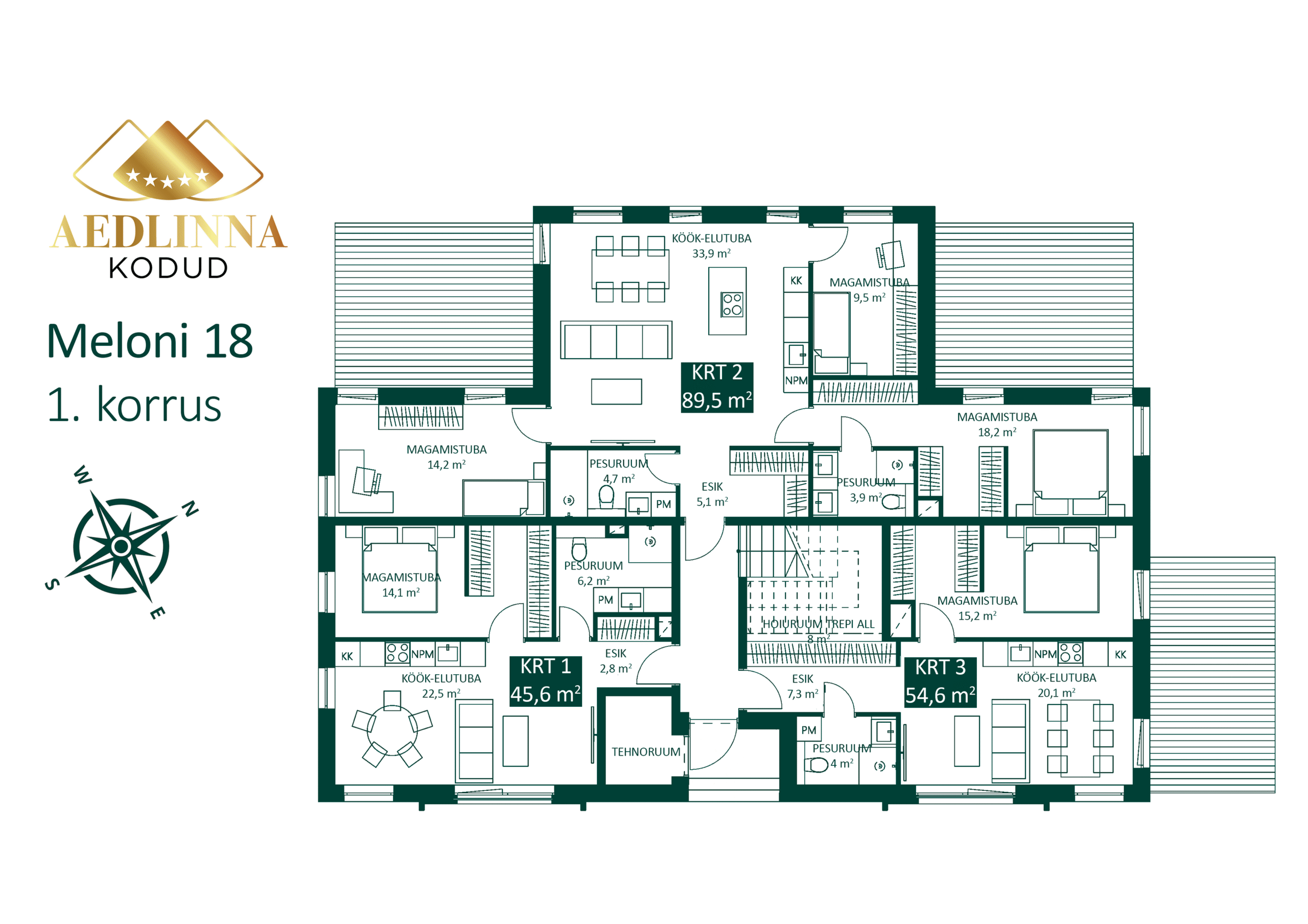 9 3 4 71.8 Katuseterrass ja rõdu Ei 1 Ei 319 900