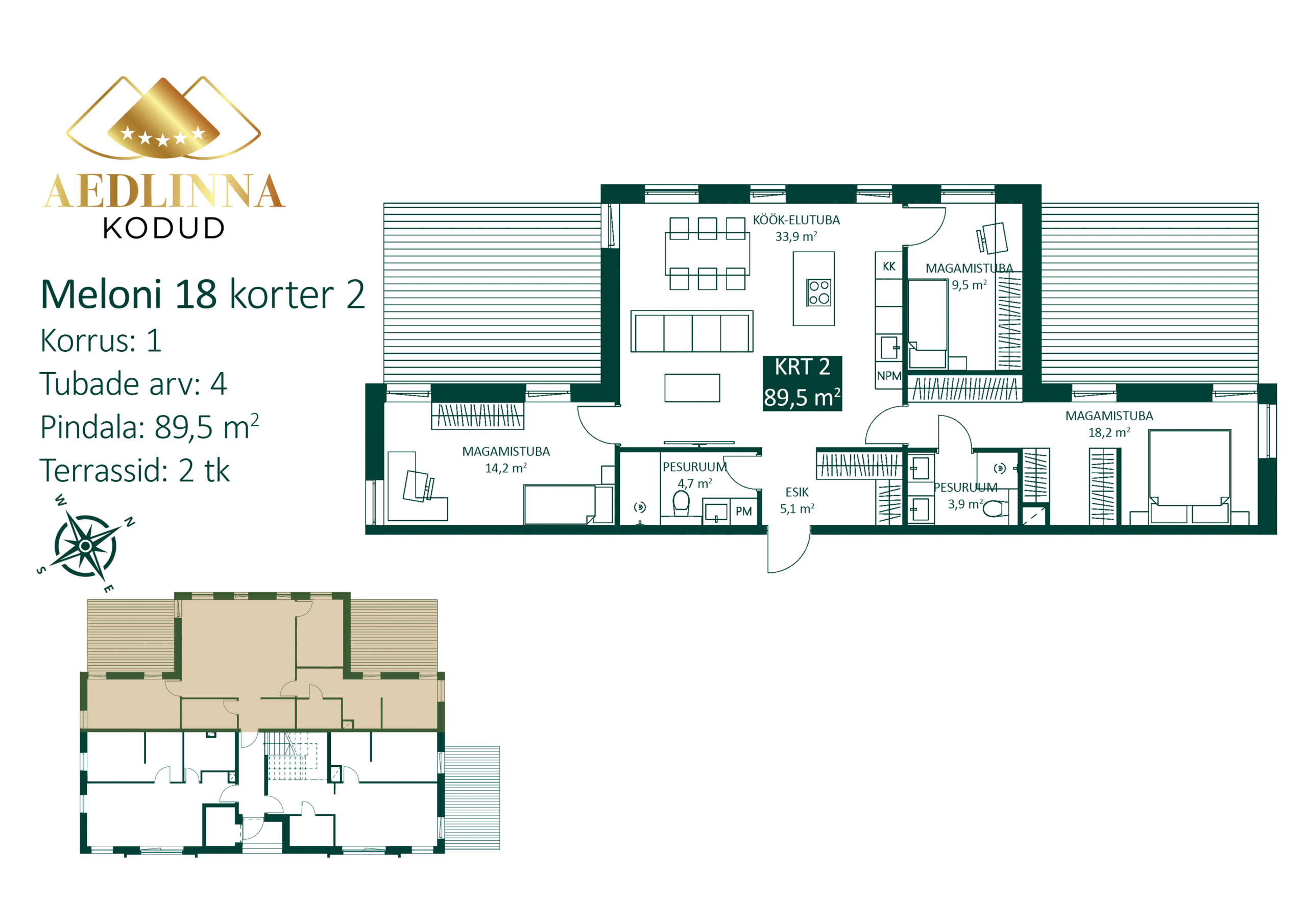 2 1 4 89.5 2 x terrass Jah 2 Sauna võimalus 373 900